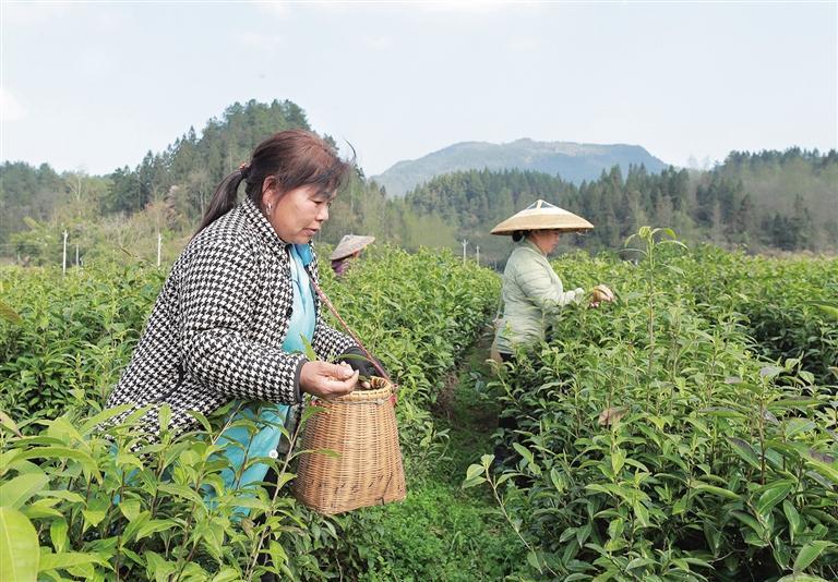 3月10日,花垣县石栏镇雅桥村七秀坊茶园,茶农在采摘首批春茶。眼下,该镇春茶进入采摘期,茶农们早出晚归,加紧采收,山间茶园一派繁忙景象。 龙艾青 摄