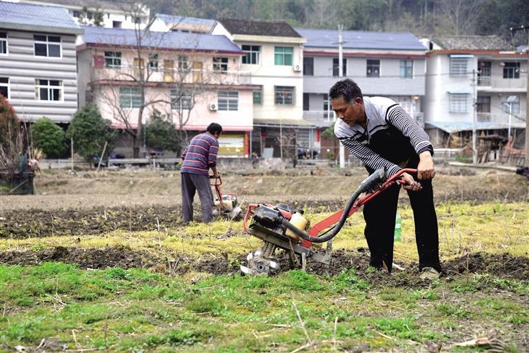 3月14日,永顺县朗溪乡朗溪村,当地村民操作微耕机翻耕土地,为春播玉米做准备。 刘文化 摄
