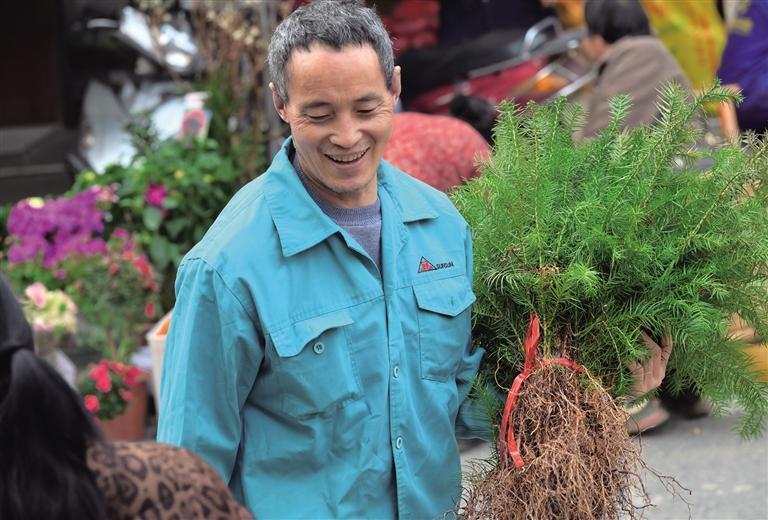 3月12日,花垣县花垣镇吉峒坪集市苗木市场,人们在选购苗木,美化家园添新绿。 龙恩泽 摄