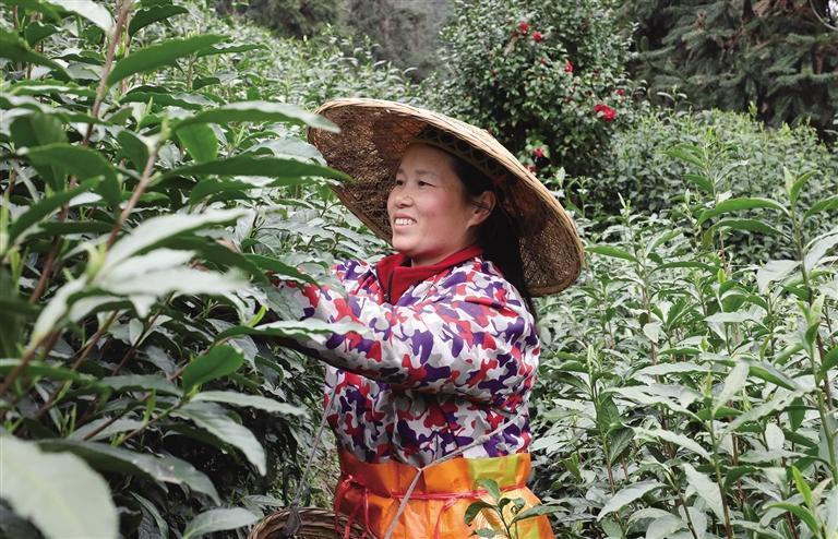 3月26日,保靖县葫芦镇米塔村生态茶园基地里,茶农们正忙着采收茶叶。近年来,保靖县利用部分山区海拔高、土质好、气候湿润等天然优势,采取“村党支部+合作社+农户”模式,引导村民发展高山生态茶叶种植,带动当地村民增收。 俞采华 摄