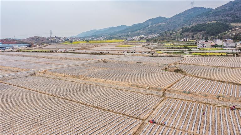 近日,泸溪县浦市镇新堡村烟农抢抓晴好天气,有序开展烟苗移栽工作。今年,该村“小改大”高标准农田改造项目全面竣工,呈现出“田成方、路相连、渠相通”的现代农业新景象,为全程机械化作业、提升烟叶产量、促进农民增收、助力乡村振兴打下坚实基础。 张克宁 摄