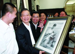 总理饱含深情的话语,让同学们的发言越来越踊跃,现场气氛越来越热烈。同学们有的汇报自己的毕业去向,有的讲述自己在就业选择中的思想转变。一位美术系的学生把连夜绘制的温家宝当地质队员时的肖像画送给他,表达自己赴西部、下基层就业的坚定信念。