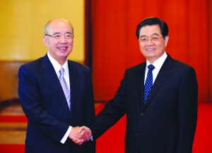 新华社北京5月26日电(记者 陈键兴 赵 博 李寒芳)中共中央总书记胡锦涛26日下午在人民大会堂会见中国国民党主席吴伯雄和他率领的国民党大陆访问团全体成员,并同吴伯雄举行会谈。胡锦涛强调,一年来两岸关系取得一系列重要成果,展现出和平发展前景。实践证明,改善和发展两岸关系是人心所向、大势所趋,两岸关系和平发展促进了台海地区和平稳定,受到国际社会广泛欢迎和支持。推动两岸关系在新的起点上向前发展,需要我们站在全民族发展的高度,审视世界发展潮流,看清两岸关系发展趋势,牢牢把握两岸关系和平发展的主题,坚持正确方向,拓宽前进道路,不断开创两岸关系和平发展新局面。 会谈在诚挚友好的气氛中进行,取得重要成果。双方都表示要继续推动落实“两岸和平发展共同愿景”,不断促进两岸关系和平发展;都认为要维护反对“台独”、坚持“九二共识”的共同政治基础,并不断增强和深化互信;都强调要加强两岸经济合作,尽快商谈两岸经济合作协议,以利建立两岸经济合作机制;都赞同要积极促进两岸文化教育交流,举办以文教交流为主题的两岸经贸文化论坛,开始探讨协商两岸文化教育交流协议;都主张两岸在涉外事务中避免不必要的内耗,增进中华民族整体利益。 会谈开始时,胡锦涛首先代表中共中央向吴伯雄一行表示热烈欢迎。他说,去年5月,我和吴主席举行了两岸关系新形势下国共两党领导人首次会谈,就促进两岸关系改善和发展深入交换意见,达成重要共识,为推动两岸关系实现历史性转折发挥了重要先导作用。 吴伯雄感谢胡锦涛发出邀请并再次举行两党领导人会谈,并表示这次来访是国共两党关系的一件大事。 胡锦涛表示,去年12月31日,我在纪念《告台湾同胞书》发表30周年座谈会上发表讲话。这次讲话在坚持我们党既定的对台大政方针和目标的基础上,重点阐述两岸关系和平发展的主张,提出了推动两岸关系和平发展的六点意见,从政治、经济、文化、社会、涉外事务等方面提出方针政策。这是我们关于与台湾方面共同发展两岸关系的基本思路,是对未来两岸关系前景的规划,同时也尽可能照顾台湾同胞的合理愿望,尽可能呼应台湾方面的积极诉求,充分展示了我们的诚意。 (下转四版) |