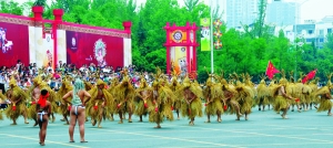 由联合国教科文组织、文化部、四川省人民政府主办,中国非物质文化遗产保护中心,成都市人民政府承办的中国成都国际非物质文化遗产节6月1日在蓉城隆重开幕,共有来自国内外49支代表队参加国际非物质文化遗产交流展示活动。在开幕式上,由我州永顺县、古丈县演员组成的湘西自治州土家族毛古斯舞代表队亮相国际非遗大舞台,这也是湖南省唯一参加非遗节的代表队。土家毛古斯以其远古的自然特征、粗犷的表演风格在非遗节上引起了广泛瞩目,被联合国教科文组织的官员称为“人类远古戏剧舞蹈的活化石”。图为土家族毛古斯舞在开幕式上表演。 卢瑞生 摄 |