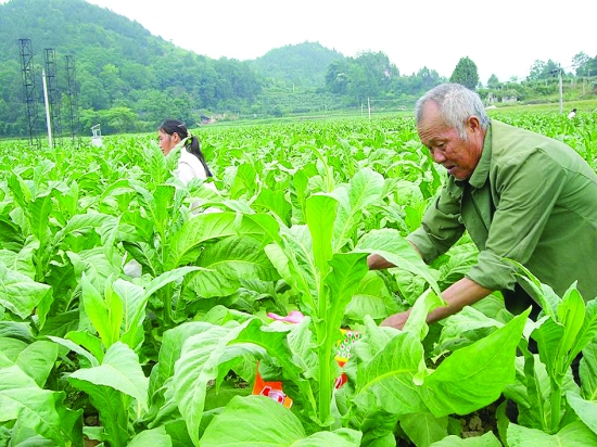 永顺县抓住被确定为广东中烟工业有限责任公司新烟区试点的契机,大力发展烤烟产业。目前,全县61765亩烤烟长势喜人。 图为6月9日,松柏镇烟农培管烤烟场景。 向水生 黄昌兴 摄