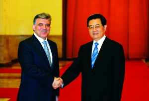 据新华社北京6月25日电(记者 荣 燕)国家主席胡锦涛25日下午在人民大会堂与土耳其总统阿卜杜拉·居尔举行会谈。两国元首一致同意,立足当前,着眼长远,共同努力,把新世纪中土友好合作关系推上更高水平。 胡锦涛说,在相互尊重、相互信任、平等互利、共同发展的基础上,发展中土更加密切的伙伴关系是中国政府的既定方针。中方愿同土方一道,从以下五个方面继续为此作出努力:(一)秉承友好传统,深化政治关系。(二)扩大经贸合作,实现共同发展。(三)加强安全合作,打击“三股势力”。(四)促进人文交流,扩大友好往来。(五)保持多边合作,共促世界和谐。 居尔完全赞同胡锦涛关于发展两国关系的意见,表示土方愿进一步加强双边政治关系及各领域合作。 会谈后,两国元首共同出席了中土双边合作文件的签字仪式。 |