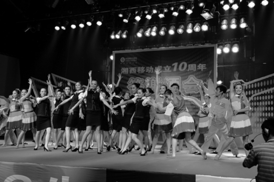 ▲由湘西移动公司员工参加演出的开场歌舞《移动Very good(真棒)》。
