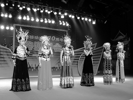 州歌舞团演员在答谢酒会上演出。 ▲