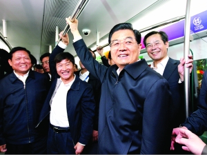 在列车上,胡锦涛察看了车厢里配备的各种人性化设施,还来到驾驶室看望列车司机,了解操作情况,充分肯定地铁公司为改善首都交通、方便群众出行作出的积极贡献。