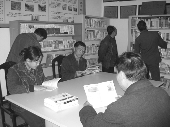10月17日,龙山县里耶镇比耳村村民在村“农家书屋”看书阅报。里耶镇比耳村是远近闻名的省“社会主义新农村建设示范村”,“全国新农村建设明星村”。经过近20年的奋斗,该村形成了以比耳纽荷尔(脐橙)为品牌的拳头产品,人均纯收入4000元。同时,该村十分重视提高村民的科学文化素质,在各级政府支持下,建设了农家书屋,现有藏书近10000册,受到广大村民称赞。