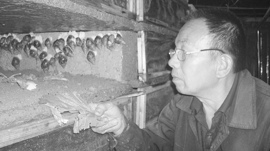 保靖县涂乍乡68岁离任村干部张承忠2007年开绐投资养殖白玉蜗牛,带领全村群众共同致富。图为10月15日,张承忠在给蜗牛喂料。 彭书凤 朱开朗 摄