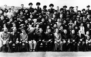 1957年4月,湖南省在全省各民族中选出优秀民族干部、群众代表组成湖南省民族参观团赴北京等地参观学习。4月14日,毛泽东、周恩来、朱德等中央领导在北京接见了湖南和云南各民族参观团并合影留念。我州参加接见合影的同志有永顺县县长彭武刚(土家族、左三)、泸溪县副县长张清基(苗族、左四)等七名少数民族同志。