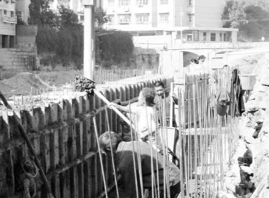 永顺县污水处理厂项目正在进行紧张的施工。该县在经济十分困难的情况下,预算修建污水处理厂项目资金4000万元,现已投资约3000万元,该项目计划在2010年内完工。届时将会使国家名胜风景区猛洞河水变得更清洁。同时还可以直接和间接的为永顺县提供约700个就业岗位。目前,该县采取了“扩床、清基和构建一体化”同时作业的先进施工法。图为11月8日,县城内猛洞河支流——
