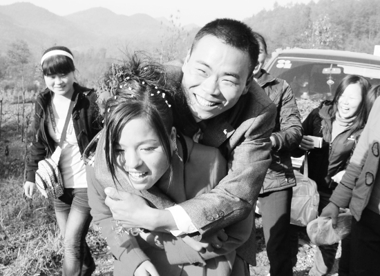 11月6日,龙山县高山上的大安青年黄思成正在迎娶该县新城办事处女青年孙小娟。多年以来,都是大安姑娘嫁山下,山上的小伙找媳妇难。近年来,由于政府扶贫攻坚,加上大安人们艰苦奋斗,已经改变贫穷落后的面貌。富裕起来的大安青年纷纷从城里和其他大地方娶来新娘过上幸福生活。 邓德志 摄