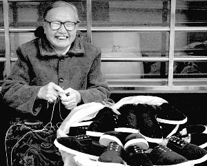 11月12日,在龙山县城朝阳路街头,来自农村的67岁老人滕建玉,高兴地一边给布鞋纳底,一边等候顾客到来。当问起生意情况时,滕建玉喜悦之情溢于言表,说天冷了,手工布鞋卖价好、销路畅。