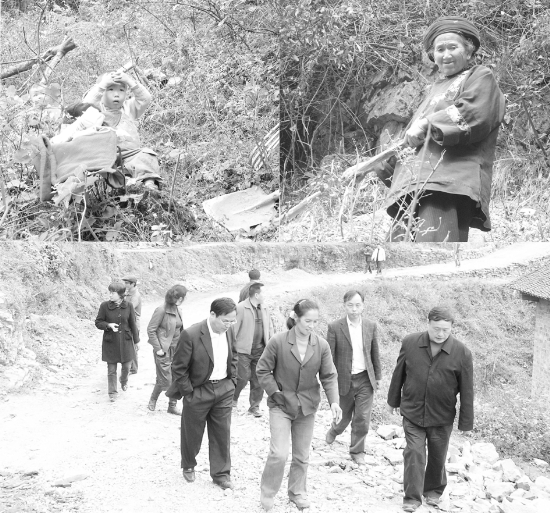 11月7日,花垣县教育局局长黄智敏率局相关干部深入董马库乡板栗村开展扶贫工作,当黄智敏一行看到该村鼎罐寨村民自发地在山崖上修路时,深受感动,当即表示给予5000元材料费,并落实了该村的公路、村部、球场等建设资金8万余元。 张耀成 周智敏 摄