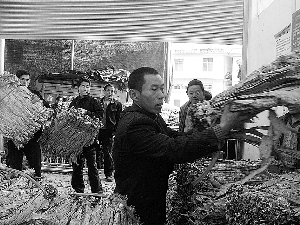 保靖县水银乡坚持科学发展富民,强力推进传统烟叶生产方式向现代烟草农业方式转变,实施烟地规模化,烟苗、烟水、烟路、烟机、烟房配套化。今年种植烟叶4200亩,产量1.1万担,产值1060万元。截至11月14日,交售烟叶突破1万担,烟农户均收入2.04万元。图为11月14日烟农售烟的繁忙场景。 彭书凤 曾祥宏 摄