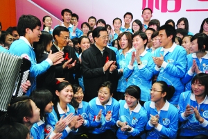 新华社北京11月30日电(记者孙承斌 邹声文)中共中央总书记、国家主席、中央军委主席胡锦涛高度重视防治艾滋病工作,近年来曾3次在世界艾滋病日到北京市医疗卫生机构和居民社区考察。在第22个世界艾滋病日到来之际,胡锦涛总书记和中共中央政治局常委、国务院副总理李克强30日上午来到国家会议中心,参加首都防治艾滋病志愿者活动。胡锦涛代表党中央,向为防治艾滋病作出贡献的广大医疗卫生工作者和志愿者表示诚挚的问候。 为深入推进防治艾滋病工作,北京市从11月29日至12月5日举办“遏制艾滋,履行承诺———首都防治艾滋病志愿者活动周”,在全市主要公共场所和部分学校、社区、工地集中开展防治艾滋病宣传活动。这次活动周的主题展览活动在国家会议中心进行。场馆里,到处是鲜艳的红丝带,到处是热情的志愿者。 9时50分,胡锦涛等领导同志走进场馆,几名志愿者迎上前来,为他们佩戴上红丝带。 胡锦涛首先来到活动的主题展示区。在一块块展板、一件件实物前,总书记认真听取介绍,详细了解全国和北京市防治艾滋病工作进展情况特别是志愿者开展活动情况。得知北京市防治艾滋病志愿者已发展到5万多人,他们深入社会重点场所和重点人群,做了大量富有成效的工作,总书记给予了充分肯定。胡锦涛强调,防治艾滋病,关系到人民身体健康,关系到民族生存发展。当前防治艾滋病形势仍然严峻,我们一定要动员社会各方面力量,继续毫不放松地抓好防治艾滋病工作。 主题活动区里,志愿者们正在开展形式多样的防治艾滋病宣传活动。在同伴教育模拟课堂,胡锦涛饶有兴致地观看大学生志愿者通过小游戏普及艾滋病预防知识。在咨询热线展位,胡锦涛俯身浏览“首都红丝带”网站内容,向工作人员询问网站建设情况。他说,在互联网迅速发展的今天,网络为我们开展防治艾滋病工作提供了一个新的有效手段。希望“首都红丝带”网站越办越好,在防治艾滋病工作中发挥更大作用。 联合国艾滋病规划署驻华办事处官员今天也来参加首都防治艾滋病志愿者活动。胡锦涛对他们表示热情欢迎,对国际组织和国际友人为中国防治艾滋病工作提供的支持和帮助表示衷心感谢。他说,艾滋病是全人类的共同敌人,防治艾滋病是全人类的共同责任。我们愿同国际社会加强交流合作,共同应对艾滋病这一全球性挑战,为有效推进防治艾滋病事业作出积极努力。 胡锦涛十分关心艾滋病患者和感染者的救治情况,去年曾到北京市地坛医院考察,看望慰问艾滋病患者和感染者。在主题活动区现场,总书记通过视频通话系统,同地坛医院的医务人员和正在这里诊治的感染者亲切交谈。 地坛医院负责人告诉总书记,他们医院按照总书记去年考察时作出的重要指示,加大防治艾滋病工作力度,开展了21项艾滋病科研课题,发展了2万多名志愿者,主动来接受艾滋病检测的人也越来越多。胡锦涛听后表示满意,他勉励工作在防治艾滋病第一线的医务人员,继续发扬人道主义精神,不断提高医疗救治水平,为做好防治艾滋病工作作出更大贡献。 胡锦涛一年前在地坛医院见过的艾滋病感染者小郑,今天又通过视频通话系统同总书记见了面。小郑去年经过服用免费母婴阻断药物,生下了一个健康的女儿。得知小郑的情况后,总书记从自己工资中捐出5000元,鼓励小郑增强生活勇气。再次见到总书记,小郑激动地抱着一岁半的女儿向总书记问好。 胡锦涛关切地询问小郑近来的身体情况。听到小郑说现在身体状况良好,看到她女儿健康活泼可爱,胡锦涛十分高兴。总书记对小郑说:“希望你继续保持乐观向上的精神状态,配合医院搞好治疗,努力争取尽早康复,同时也希望你把宝宝培育好,让她健康快乐地成长。我祝愿你们家生活幸福!” 听了总书记这番真挚的话语,小郑心里倍感温暖,连声感谢总书记。 随后,胡锦涛又来到主题互动区。在防治艾滋病志愿者招募站,许多年轻人正在领取志愿者报名登记表。总书记走过去,向工作人员了解志愿者招募情况。北京中医药大学博士生刘丹彤去年参加了北京奥运会志愿服务,今天又申请成为防治艾滋病志愿者的一员。她对总书记说,做一名志愿者很光荣,我是学医的,愿意为防治艾滋病尽一份力。总书记笑着说:“你有无私奉献精神,有从事志愿服务经验,还有医学专业知识,相信你一定能成为一名优秀的防治艾滋病志愿者。” 在志愿者的热情邀请下,胡锦涛同大家一道动手制作起红丝带。红丝带做好后,总书记亲手贴到“爱心墙”上的心型图案中。顿时,由无数个红丝带组成的心型图案亮了起来…… 表演台上,志愿者们一边打着手语,一边演唱歌曲《微笑北京》。一曲唱毕,大家纷纷围拢到总书记身边。胡锦涛对志愿者们说,这些年来,首都防治艾滋病工作取得明显成效,这同广大志愿者卓有成效的工作是分不开的,你们功不可没。但也要看到,防治艾滋病工作仍面临艰巨繁重的任务,还有大量工作需要志愿者去做。希望广大志愿者进一步发扬红丝带精神,更多更好地关爱艾滋病患者和感染者,尤其要引导社会不去歧视他们。让我们共同努力,为推进我国防治艾滋病事业不懈奋斗。 活动结束时,总书记和簇拥在身边的青年志愿者们一同唱起《让世界充满爱》。这饱含真情的旋律,在场馆里久久回荡…… 中共中央书记处书记、中央办公厅主任令计划等一同参