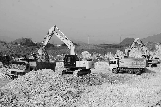 2009年12月28日,花垣县工业园区建设现场,2台挖掘机和2辆工程车正在紧张施工。该园区以高科技、大产能、高附加值产业为定位,首期工程面积达5平方公里,总投资5亿元。自年初开工以来,“三通一平”进展顺利,现已完成投资1.35亿元。此外,该园区还在10月份被省政府办公厅、省发改委授予“湖南省新材料产业自治州基地”称号。 龙艾青 摄