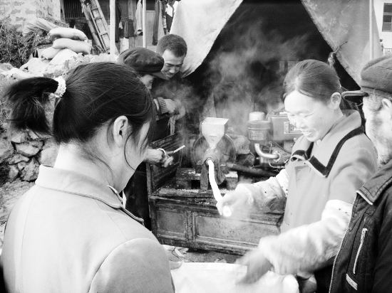 春节临近,年味渐浓。各种具有地方特色的“年货”又在我州“风靡”起来。图为1月21日,永顺县芙蓉镇保坪村村民在欢欢喜喜“炸炮糖”,准备热热闹闹过新年。 符文斌 向海林 摄