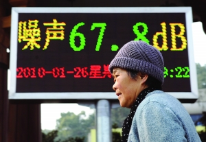 近日,长沙市将一批环境噪声自动监测显示屏安装在市区街头,对环境噪声进行实时监测。显示屏上的分贝数值根据所监测区域内环境噪声的大小而不断变化,噪声达标时分贝值数字呈绿色,超标时数字则呈红色。 新华社记者 李尕 摄
