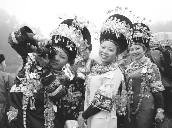 社会主义新农村的建设,使农村展现了新貌,电力农网、自来水等通信设施架进了偏僻山区。随着电子时代的发展,人民的消费水平增强了,许多农民学会了使用电脑数码等高科技产品。如今农村每逢节日之际,总是能见到身着银饰盛装的苗家姑娘们拿着数码照相机采风的动人场面,为欢乐的节日增加了一道道亮丽的风景。 石邦球 摄
