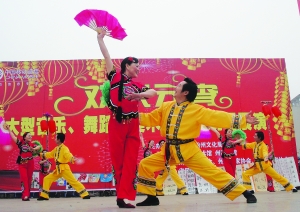 2月28日,“欢乐元宵”音乐、舞蹈、美术、书法现场展在吉首市团结广场举行。艺术家和艺术爱好者们用歌声、舞姿和琴音欢庆元宵。40余名爱好美术、书法的小朋友现场为观众展示才艺。此次展演由州文化局主办,州群众艺术馆、州图书馆承办,省民族歌舞团、州老龄委艺术团、州民委团结广场艺术团等单位参加演出。图为州老龄委艺术团表演的群舞《跳花灯》。 彭 宁 摄