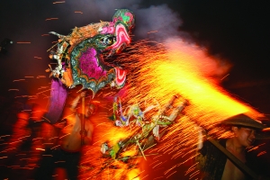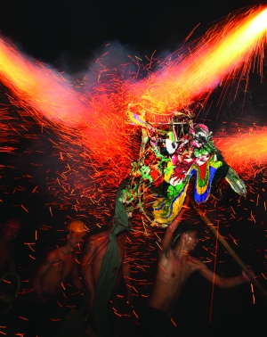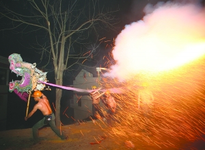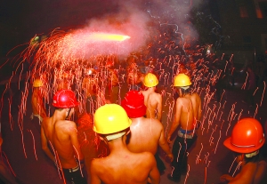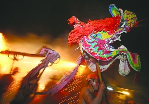 正月十五,吉首市马颈坳镇夜幕降临,欢快的锣声敲响,四条龙出现在广场,每条龙由五个年轻后生舞起。这些个年轻后生,清一色赤裸着上身。烧龙前先喝包谷烧,喝完酒只听他们一声狂呼,把龙灯高高举起,开始舞动。霎时间,广场四周四处喷涌而出如钢花一样的绚烂烟花,而那四条龙仿佛看见了龙珠一样,嗖一下就开始往各个方向冲去,向“花”中间冲去。那些年轻后生丝毫没有惧怕的念头,反而哪里“花”多,就往哪里冲。一旁看去,只见四条龙就像在火海中穿梭一样,踉踉跄跄、辗转腾挪。锣声越急,火花越绚烂,这些年轻人越兴奋。包谷烧的浓烈更是无时无刻不点燃着他们的豪情。天上是冲天的礼花,漫天飞舞,地上是无数的火花四处飘扬,四条龙兴奋地上下翻飞,整个场地被一片欢乐所笼罩。所以烧龙也被人称为“醉龙”、“癫龙”。 约个把小时过去了,舞龙的后生们往街上飞奔。人越多,龙也越兴奋,有时候忘记了火花在哪里,往人堆里一追,惊跑一堆人,当龙退回,这片缺口又被人围得密密匝匝。龙所到之处,户主人放起鞭炮迎接,门前放着酸萝卜和酒,任舞龙人吃喝,吃饱了,喝饱了继续舞。整整一个晚上,穿过整整一条街后,四条龙终于累趴下了,也被火花烧的不成样子,汉子们横七竖八醉 倒了一大片,整个集镇归于平静。马颈坳的汉子们用烧龙来祈求来年的五谷丰登、平安顺利。 图/文 记者 张谨 彭伟 实习生 黛卡梅妮 陈生洋 |