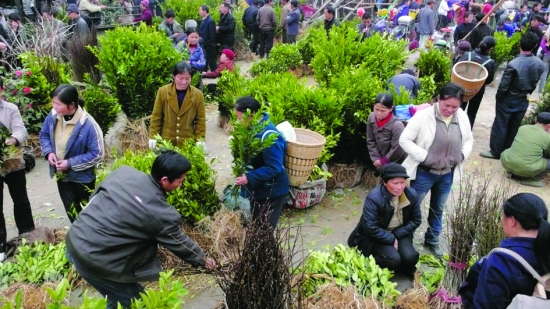 3月4日,吉首市乾州农贸市场苗木交易区内,农民正在选购各种苗木。随着植树节的即将来临,各地的苗木市场开始活跃起来。 吴清芝 摄