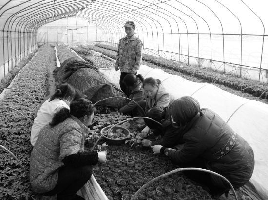 2月26日,泸溪县蔬菜办技术人员正在指导菜农茄子嫁接技术。为增强茄子的 品质,提高产量,促进菜农增产增收,泸溪县蔬菜办 组织技术人员深入到联系点武溪镇五里洲村蔬菜基地指导茄子嫁接技术和茄子主要病虫害防治。 李焱华 全燕玲 摄