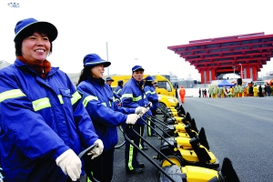 当日,上海浦东新区环卫市容、城管执法、公路作业、环境监测、绿化抢险等行业的管理和作业人员共1000多人,携各种装备及车辆以“世博会,我们准备好了”的承诺,整装待发,誓以努力工作,创造一流的市容环境迎接世界各地的宾客。