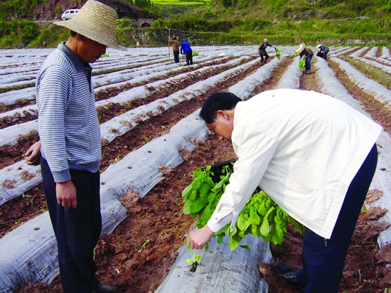 3月29日,泸溪县达岚镇达岚坪社区,烟农们正在该镇100亩“烟稻连作”示范片里移栽软盘烟苗。该示范片的稻田均为年前翻耕、高标准开箱、双层施肥法和标准化铺膜、移栽等新技术,确保今年烟叶增产增效、晚稻丰收。 吴代清 摄