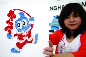 ▲ 3月31日,接待人员展示用五谷杂粮制作而成的农家特色“海宝”工艺品。 在上海世博会倒计时30天来临之际,一批农家特色“海宝”工艺品陆续亮相上海金山区廊下镇中华村的“世博农家”示范户。这些工艺品用五谷杂粮、农家土布等材料制作而成,主要作为装饰和赠送给游客的小礼物。世博会期间,到这里观光的中外宾客也可亲手参与制作,体验农家风情。 新华社发(