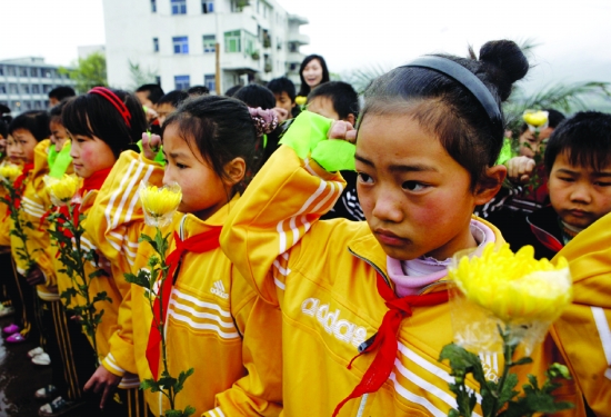 4月1日,四川华蓥市阳和小学少先队员在华蓥山革命烈士纪念碑前宣誓。 新华社发(邱海鹰 摄)