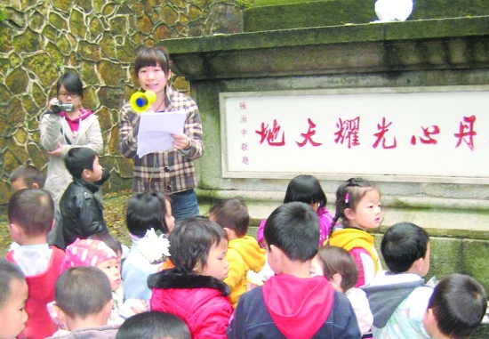 4月2日,湖南师范大学幼儿园中二班的老师带领小朋友在烈士陵园参加祭奠活动。 新华社记者 谢 樱 摄