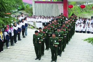 松柏挺拔,气氛肃穆。4月2日下午,在清明节到来之际,为表达对先烈的思念之情,告慰先烈在天英灵,继承革命传统,弘扬爱国主义精神,促进广大武警消防官兵树立正确的世界观、人生观、价值观,龙山县武警消防大队组织全体官兵员来到该县烈士公园,举行“缅怀革命先烈 ,继承革命传统”为主题的清明扫墓活动。图为武警消防官兵向烈士鞠躬。 田志波 唐国富 摄
