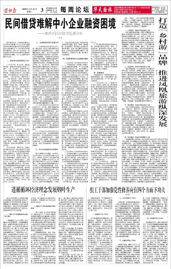 (五)出台管理办法。一是建议利用《民族区域自治法》赋予的职权,结合湘西州实际,尽快出台民间融资管理办法,使民间资本发挥积极作用。二是要大胆引进江浙一带民间资本的先进经验,为我所用。三是建立民间资本风险补偿机制。建议州财政拿出一部分专项资金,逐步建立民间融资风险补偿基金,鼓励民间资本投入,并结合企业互保、联保、担保等多种形式,解决融资难问题。