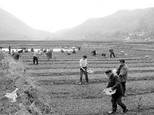 保靖县阳朝乡党委、政府干部在“破解难题促转变,服务民生促和谐”活动中,入户帮助困难群众和外出务工人员家庭搞好春耕生产。图为4月8日,溪洲村民在农业技术人员的指导下,进行旱育秧播种。 彭书凤 彭善春 摄