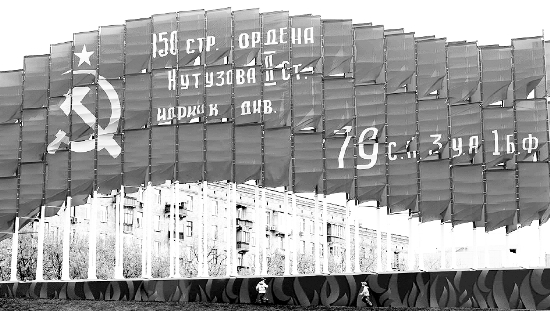 图为5月3日在俄罗斯首都莫斯科胜利广场拍摄的迎接俄罗斯卫国战争胜利65周年的旗帜。5月9日,俄罗斯将在全国范围内隆重纪念卫国战争胜利65周年。 新华社记者 鲁金博 摄