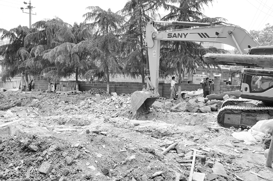 永顺县城三角公园垃圾中转场臭气熏天,该县县委、县政府听民声、顺民意,已将该县城三角公园垃圾中转场拆除。图为拆除时现场。 唐启武 摄