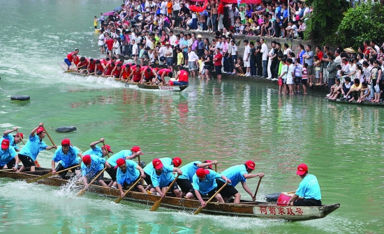 6月15至16日,凤凰县在沱江举办了一年一度的端午节赛龙舟活动, 沱江上龙舟飞渡,水花纷飞,呐喊声加油声锣鼓声响彻云霄,此次共有13支队伍参加了比赛,卫生系统、十里排红砖厂分获男女冠军。 本报记者 张谨 摄