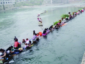 “美化城市环境,创造幸福生活”,永顺县为了实现这一目标,自去年以来,对街道、河道进行了整改,铺设污水管道,建设污水处理库,使污水集中处理,环境得到提升,河水水质转好,广大居民得到实惠。图为6月18日,该县居民在河里洗衣洗物。