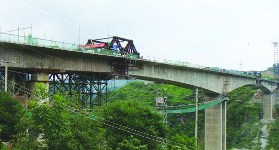 6月30日上午,湖南省路桥公司的施工人员,正在为我州西北地区路网建设中的控制性工程———永顺县不二门(横跨猛洞河)大桥最后一个主拱合龙冲刺。该桥为预应力混凝土钢构-连续箱梁,全长377.62 米,,宽12.8米,其规模为我州目前同类型桥梁之最。 唐启武 摄