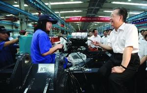 新华社记者 赵 承 苏晓洲 中共中央政治局常委、国务院总理温家宝近日在湖南长沙就经济发展情况调查研究,并主持召开湖北、湖南、广东三省经济形势座谈会。他指出,当前我国经济形势是好的,但国内外经济环境极为复杂,必须坚持处理好保持经济平稳较快发展、调整经济结构和管理通胀预期的关系,稳定政策,扎实工作,确保全面完成今年经济社会发展目标。 继7月1日考察湖南防汛抗洪工作后,温家宝2日在长沙考察了楚天科技公司、三一汽车起重机械公司、圣得西服饰公司、山河智能机械公司、青苹果数据中心公司、拓维信息系统公司和长沙市人力资源市场,详细了解企业生产经营、就业和社保情况,看望企业员工,与企业负责人交换意见。 2日上午,长沙烈日炎炎,热浪滚滚。温家宝冒着酷暑,首先来到我国制药装备行业龙头企业楚天科技有限公司。这家企业主要从事医药包装机械、医药印刷机械的研发制造,目前拥有500多项国家专利、10项国家行业产品技术标准。温家宝详细了解了企业的研发和市场销售情况,并到车间里看望了正在流水线上作业的工人。温家宝说,企业的前途在于自主创新。医药机械产业是一个朝阳产业,大有希望,你们要生产高质量的产品,搞好发明创造,为企业争得荣誉,为自己赢得尊严。 国际金融危机爆发后,工程机械行业受到冲击,市场销售急剧下滑,经营一度十分困难。中央出台促进经济增长的一揽子计划,使工程机械行业焕发了新的生机。三一集团是一家生产工程机械的大型企业,温家宝曾多次到这家企业考察。这次,他又来到这家企业,宽敞的厂房里,电脑自动化管理生产线上工人们正在组装各种大型工程机械。沿着几百米长的生产线,温总理边走边看,不时停下脚步与工人们亲切交谈,询问他们的工作情况、工资待遇。恰逢一台1000吨级汽车起重机下线,温家宝驻足观看,点头表示赞赏。他还与技术人员一起使用“机械手”为重型汽车起重机安装轮胎。企业负责人介绍说,“三一”已经走出了国际金融危机影响最为严重的时期,今年以来产值快速增长。“三一”的目标是建设成世界级企业。看到企业的新变化,温家宝十分高兴。他对围拢在身边的工人们说,要建成一个世界级企业,就要有最好、最优、最高的产品质量,就要有处于世界领先地位的发明和专利,就要培养出一代代优秀的人才。前进的道路上固然会遇到各种困难,但只要永葆崇高的理想和顽强奋斗的精神,就一定能够到达胜利的彼岸。 山河智能机械公司是一家以生产微型和小型挖掘机械为主的企业,产品畅销国内外,大量出口欧洲市场。他们还在轻型飞机、无人机等尖端科技制造领域取得突破。温家宝走进车间考察了小型工程机械生产线和轻型飞机等新产品。在厂房前,温家宝观看了遥控挖掘机、无人探测车、滑移装载机的演示。他看后说,什么是自主创新?看看你们用勤劳和智慧生产出来的产品,就能得到圆满的答案。什么是高端?就是别人没有的我们有,别人有的我们更加先进。什么是和谐劳动关系?就是企业的发展建立在职工共同奋斗的理想上,职工收入的提高要靠制度保障,更要靠劳动生产率的提高。做到这三点企业就永远充满生机和希望。 在应对国际金融危机中,湖南的新兴产业发展迅猛,成为新的增长点。青苹果数据中心公司是我国最早从事数字化加工和出版的企业之一,也是一家服务外包企业。他们将海内外浩如烟海的铅印报纸,转化为图文并茂的数字化“电子版”;将历代权威史料、重要文献和视频资料,压缩成小小的光盘。目前正在完成“韩国历史报刊数字化工程”。在产品展厅里,温家宝饶有兴趣地观看了品种繁多的电子出版物,及各类报刊的数据库。走进2000多平方米的工作间,上千名员工正埋头在电脑前工作。他们都是“80后”的年轻人,有大专以上的学历。看到总理来了,员工们报以热烈的掌声。温家宝详细询问了员工的生产生活情况,还回答了他们的提问。大厅里欢声笑语,掌声阵阵。温家宝对大家说,中国历史文化底蕴丰厚,本身就是一个取之不竭的大“数据库”。中国开放包容、兼收并蓄,善于借鉴世界先进文化。中国人尤其是年轻人勤奋耐劳,富有智慧。你们的企业如同一棵树苗刚刚破土,终将会长成参天大树。他还嘱咐企业负责人:“一定要放开手脚让青年去奋斗,解放思想,勇于创造,大胆工作。” 拓维信息系统公司是一家从事手机动漫游戏、移动电子商务、行业软件开发的企业。他们把传统动漫应用到手机上,开拓出新的市场。温家宝观看了工作人员演示的手机动漫,以及在公交、购物等领域手机电子商务的应用。员工们还送上一幅即兴创作的描绘总理的漫画,温家宝愉快地接受。面对热情洋溢的年轻科技人员,温总理说,只有年轻人,才能承担起中国互联网发展的重任。你们要勇挑重担,通过互联网发展电子商务和动漫产业,推动经济和社会发展,改善人民的物质文化生活。你们从事的事业是高尚的、远大的,也是有前途的,祝你们成功。 温家宝始终牵挂着群众就业情况。他还专门来到长沙市人力资源市场,调查了解就业状况。长沙市人力资源市场设立10多年来,累计接待各类求职人员102万人次,有大约25万人在这里找到了工作。大厅里熙熙攘攘,有招聘工作人员,还有前来求职的群众。电脑终端和电子屏幕滚动显示着人才招聘信息