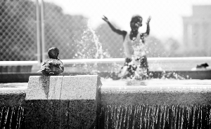 ▲ 7月5日,在美国首都华盛顿二战纪念碑前,一名男孩在水池边享受清凉。当天,华盛顿地区遭遇炎热天气,最高气温达到38摄氏度。 新华社记者 张 军 摄