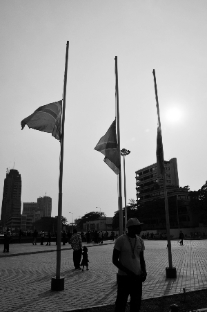 ▲7月5日,刚果(金)首都金沙萨街头的国旗降半旗,哀悼油罐车爆炸事故遇难者。刚果(金)全国在5日和6日为油罐车爆炸事故遇难者哀悼两天。刚果(金)东部南基伍省一辆油罐车当地时间2日下午6点左右在位于乌维拉市附近的桑格村由于交通事故发生侧翻,并在当地居民哄抢泄漏的汽油时发生爆炸。根据刚果(金)政府的最新统计数字,事故已造成232人死亡、195人受伤。