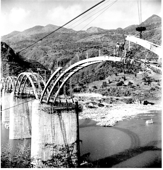 1972年建设中的保靖县酉水大桥。沙育昭 摄