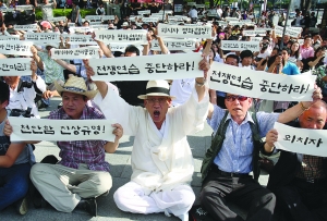 当日,为期4天的大型韩美联合军演开始。众多韩国市民走上街头,示威抗议,要求查明“天安号”事件真相,反对韩美联合军演。