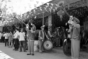 8月12日, 永顺县石堤镇老龄会馆的溜子队伍帮忙迎娶新娘。近年来,在永顺县文化部门的重视下,全县的国家级保护名录土家族打溜子得到了很好的传承和发展。乡村喜事中,溜子队伍成了一道靓丽的风景。 刘文化 向金霞 摄