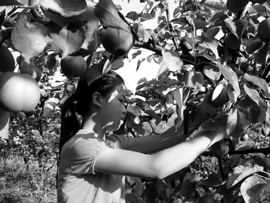 8月14日,泸溪县达岚镇岩层口小学6年级学生陈芳芳在自家梨园帮父母采摘梨。暑假期间,达岚镇镇村寨放假在家的中、小学生放弃玩乐,主动帮家人洗衣、煮饭、放牛和在田地里搞一些力所能及的劳动,既丰富了假期生活,又体会到了劳动的艰辛和快乐。 吴代清 摄